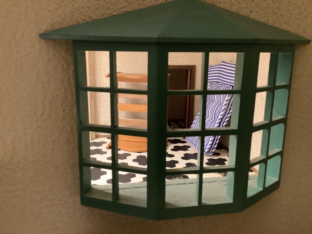 Een gerepareerd bed en een, zo te zien nieuw, matras. Op de onderste verdieping. Het was er alleen maar vlug even neergezet, anders was er eerst wel schoongemaakt, Wat een stof ligt er overal…