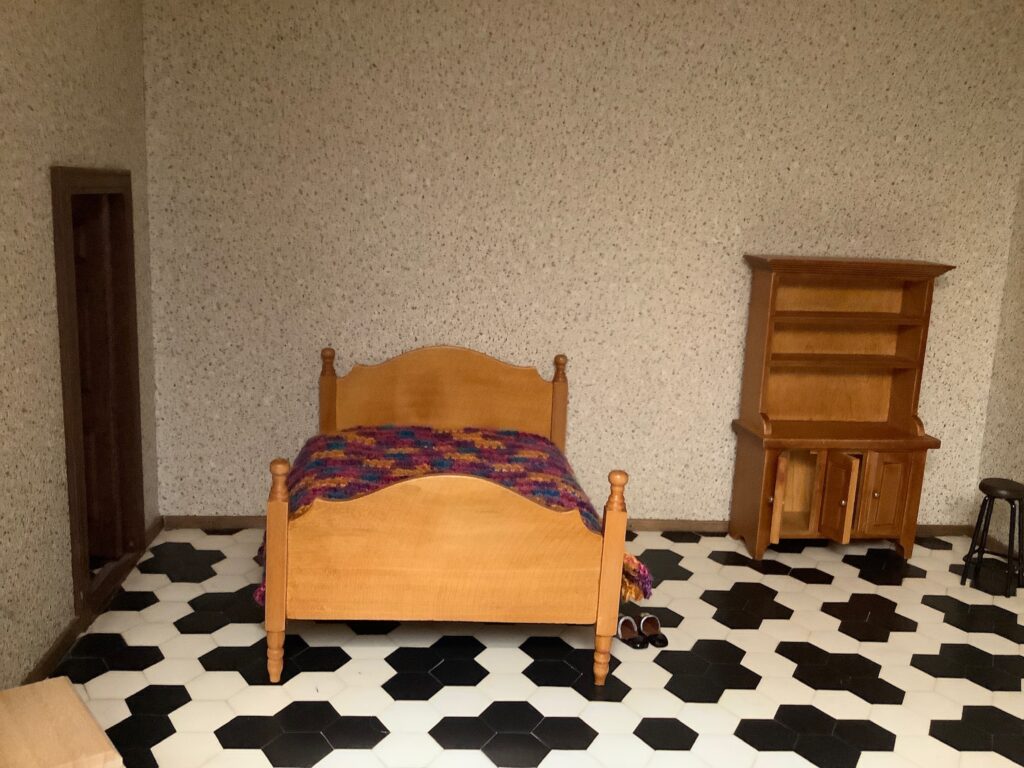 Niet veel nieuws deze week. Joop heeft wel een foto (vanaf een andere kant) gemaakt van de tijdelijke slaapplaats van onze hippies. Zo schattig, de pantoffels bij het bed. Och ja, ook hippies worden een dagje ouder en hebben behoefte aan warme voeten.