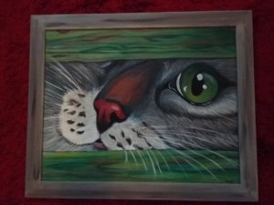 Niet echt jong begonnen met schilderen, maar wel een natuurtalent.Niet echt in een vakje te stoppen, denk ik.Alles wat leuk lijkt om te schilderen, wordt