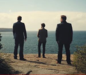 Qui dove il mare luccica, e tira forte il vento sulla vecchia terrazza davanti al golfo di Surriento un uomo abbracia una ragazza dopo che