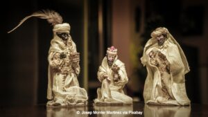 We three kings of orient are, Bearing gifts we traverse afar Field and fountain, Moor and mountain, Following yonder star. Born a King on Bethlehem’s