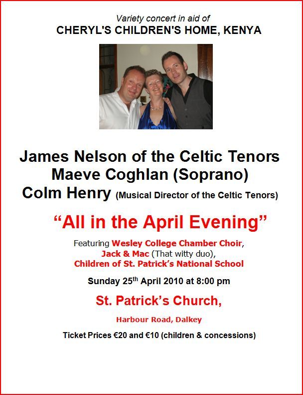 Of course I bought tickets. Winning a ticket for The CT Christmas concert would be a good reason to go to Ireland again! Didn’t win anything, but actually Cheryl’s Children did! And that is what is important.