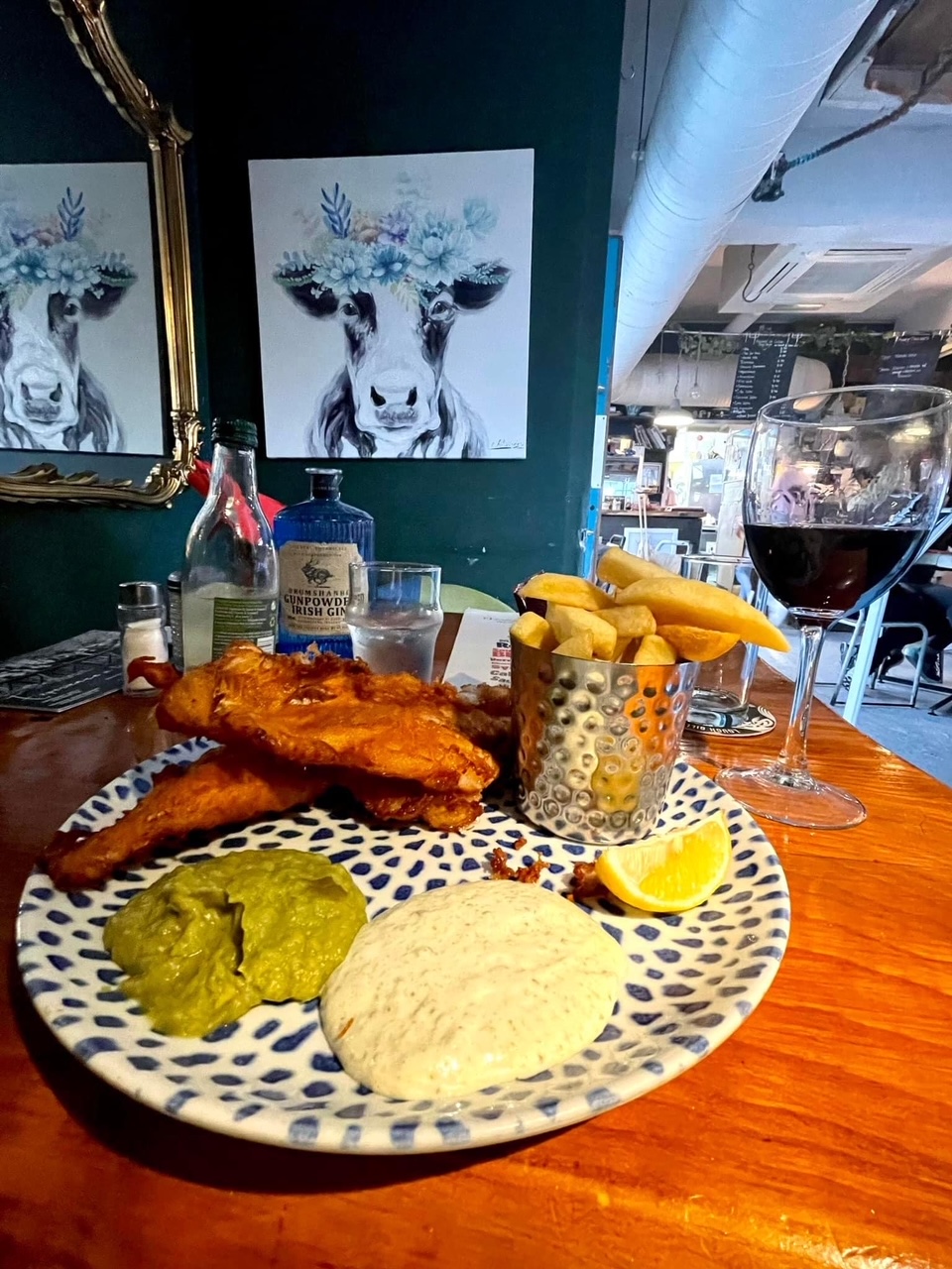 He was in better shape than Me… I played the first Tenors concert in 1995 and on several CDs, and even remember doing some Bach in Dundalk with James while he was still in College… decided not to Stay the night, declining the only Hotel room available in town for €247 (Saturday night, no Breakfast offer)… briefly Swung by Westlife as a fifth Member, my dinner guests in the Gluten-free Fish and Chips corner of Hooked were a Cow and Father Jack… they Understand me…