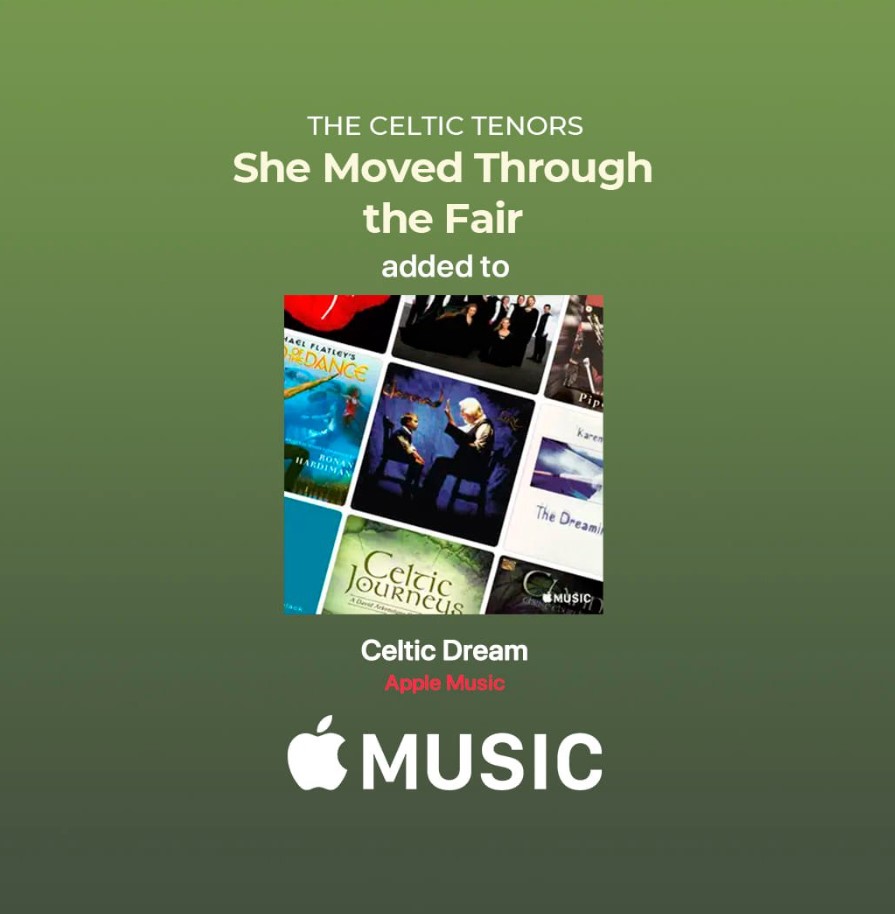 Thank you so much, Apple Music , for adding our song ‘She Moved Through the Fair’ on the ‘Celtic Dream’ Playlist – featured all around the world ![]()