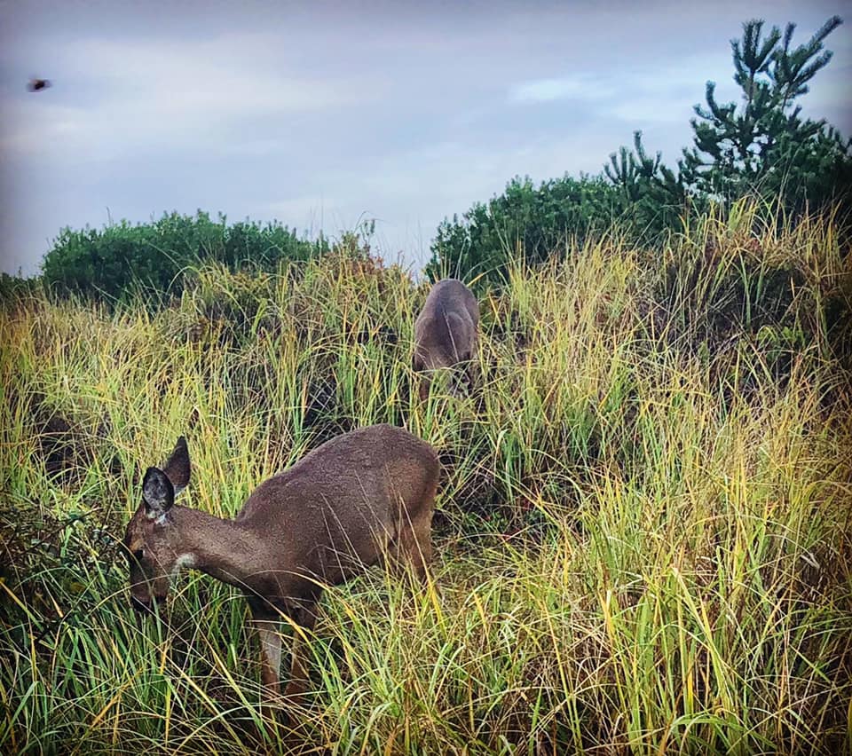 Early morning walk to the beach this morning – we were told we’d see coyotes & bears ?- but thankfully just a few very friendly deer.