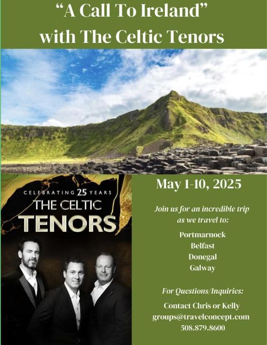 “A Call to Ireland” with the Celtic Tenors, May 1-10th 2025.