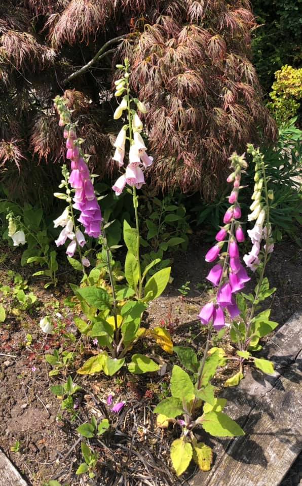 Beautiful walk with Conor again today at Lobawn, above Donard. The foxgloves are in bloom, wild & also in my own garden, as well as my peonies with their big impressive pink heads (settle now……. behave!).
