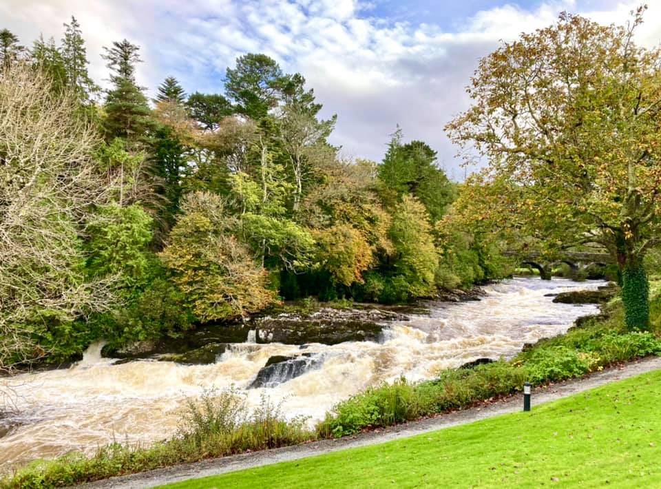 The Sheen Falls in full flow, taken from the hotel gardens.