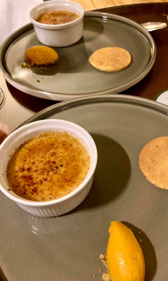 The obligatory Crème Brûlées (Passion Fruit!), with a scoop of Mango sorbet. 🤤