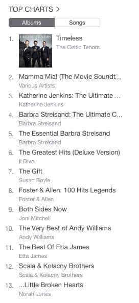 This day 6 years ago, our “Timeless” album on Universal Records/ Decca was the Number 1 ITunes download at home in Ireland…….