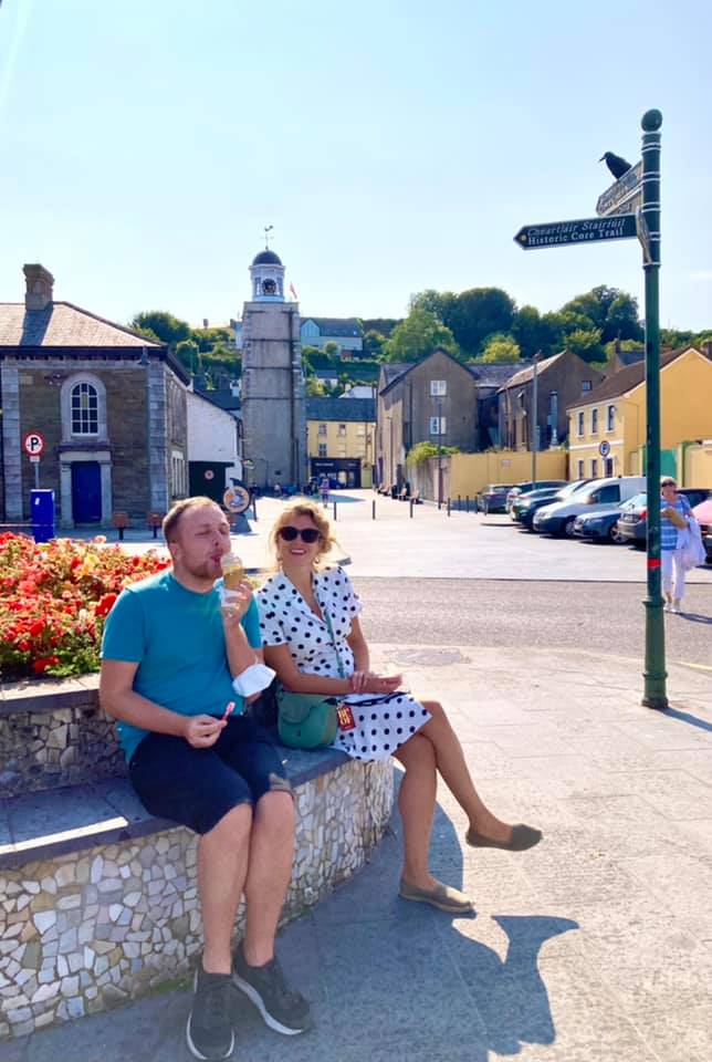 Jakob Mahase & Solen Mainguené (Spineloccio & Lauretta) enjoying ice-cream by the harbour in Youghal.