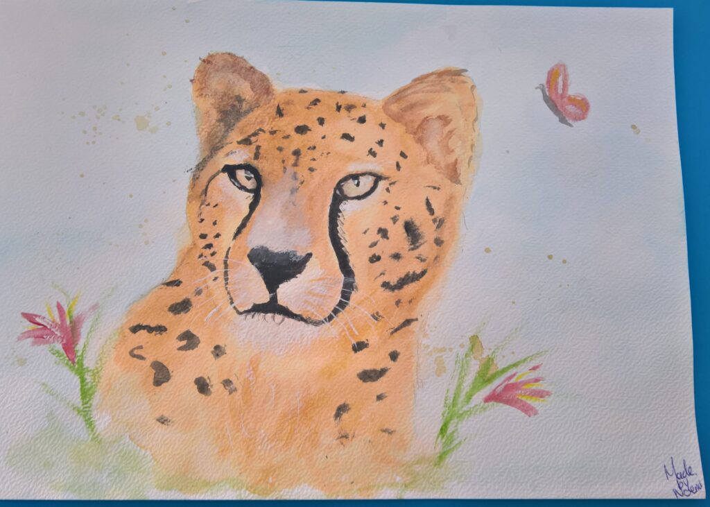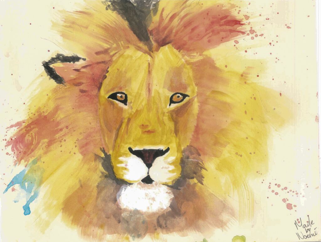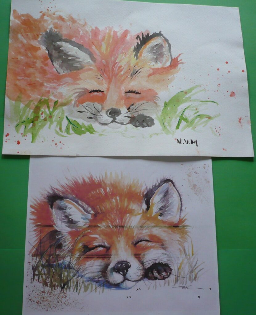 Hier laat Noémi zien dat ze haar inspiratie vaak haalt uit een gevonden plaatje. Ze tekent/schildert het niet precies na. Wellicht ten overvloede…de bovenste is gemaakt door Noémi. (die is gesigneerd).