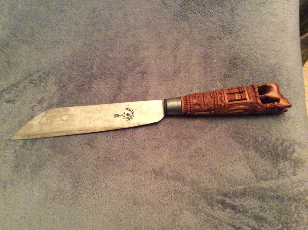 We kregen een kopie van het verhaal achter het mes mee. Dat neem ik hier over.