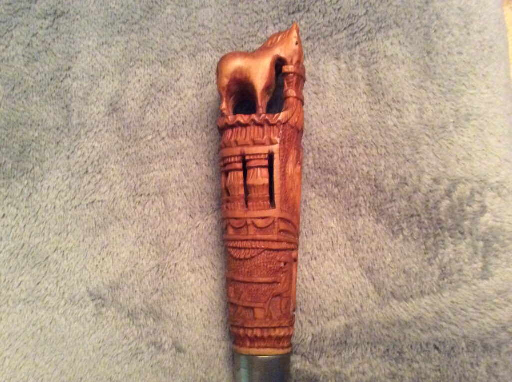 De dame die aan het houtsnijden was, nam contact op met een collega. Gelukkig streken ze met de hand over het hart. We mochten er één kopen. Tot nu toe is hij niet gebruikt. Raar eigenlijk, want hij is echt gemaakt als gebruiksvoorwerp.