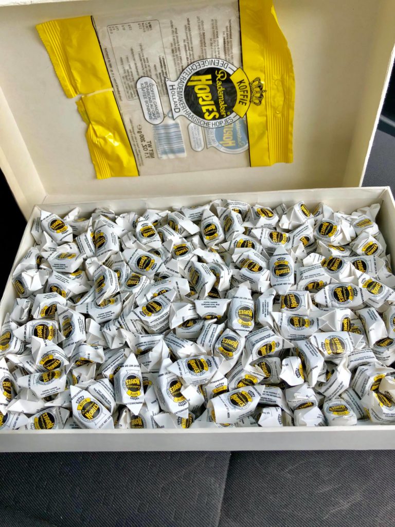 Ik had dus allerlei snoep gekocht, van Mentos tot…inderdaad…hopjes.