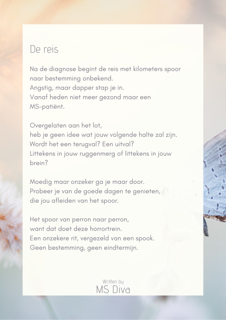 MS DIVA ofwel Jolanda, schrijft over MS. Hoewel ik me meestal bevoorrecht voel omdat mijn MS tot nu toe ‘mild’ is, kan ik me er op slechte dagen wel in vinden.